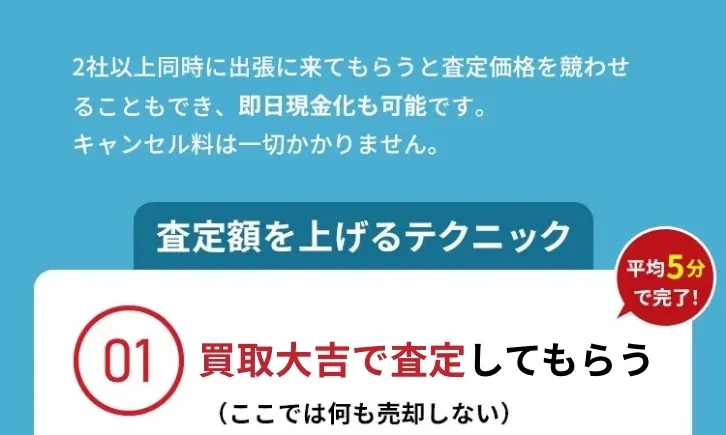 ただし、キャンペーン中でも必ずしも高額査定になるとは限らないので、相見積もりは必須です。