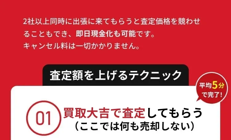 買取業者によっては査定額アップキャンペーンを行っている場合があり、利用することでより高額査定が期待できます。